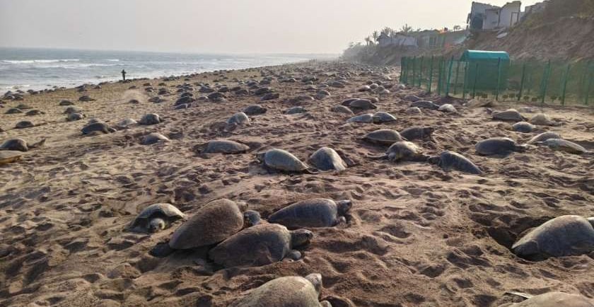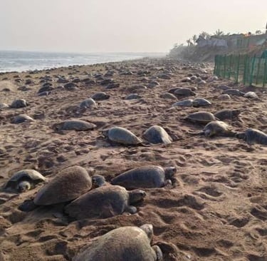 * Nutrient-Rich Waters: The offshore waters, especially around the river mouths (like the Devi and Rushikulya), are rich in the food sources that the turtles feed on, such as jellyfish, crabs, and shrimp. This abundance of prey supports the large congregation of turtles for mating before the nesting begins.
